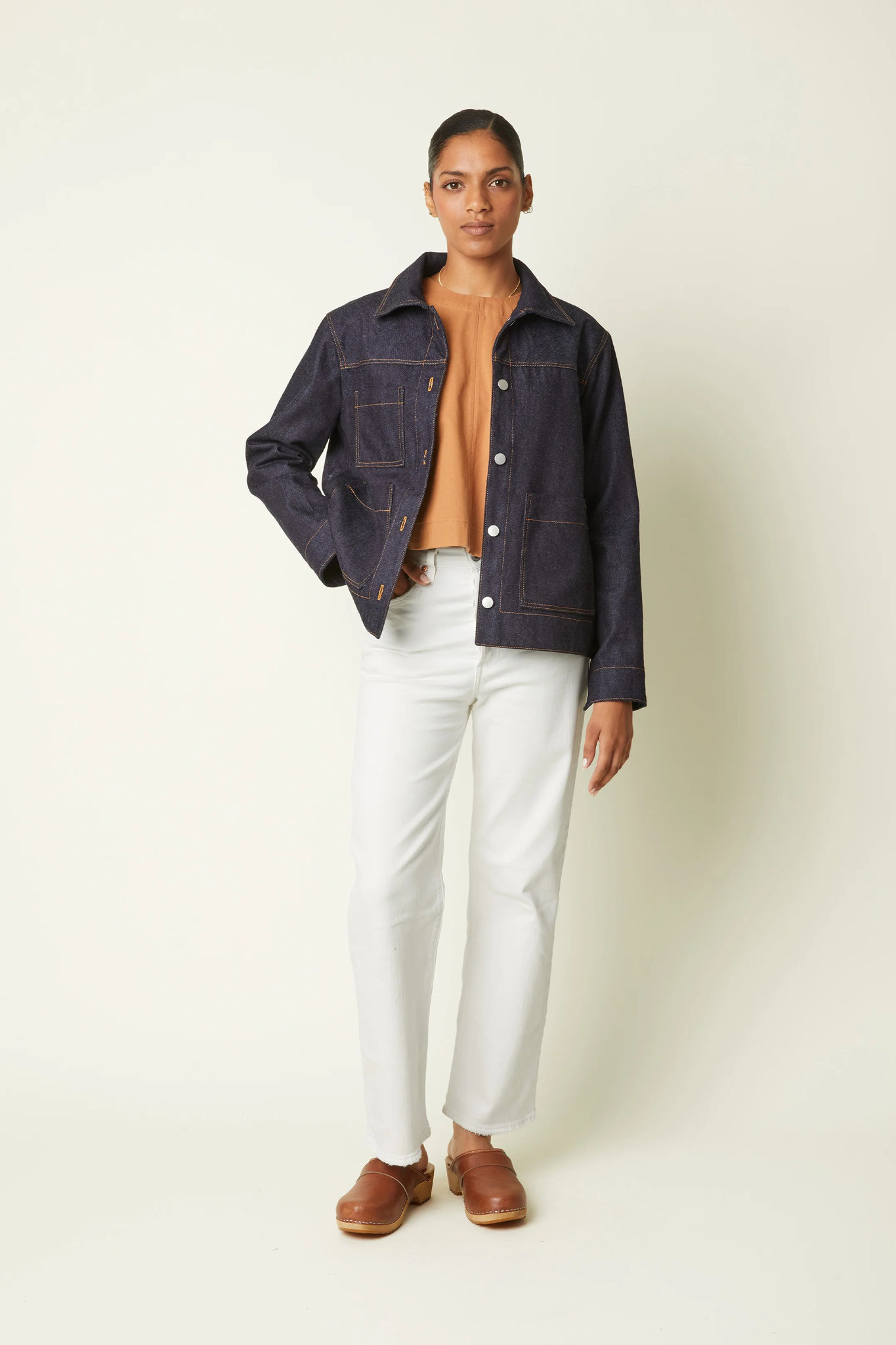 Kurze sportliche Jacke im Workwear- Retrostil mit aufgesetzten Taschen.