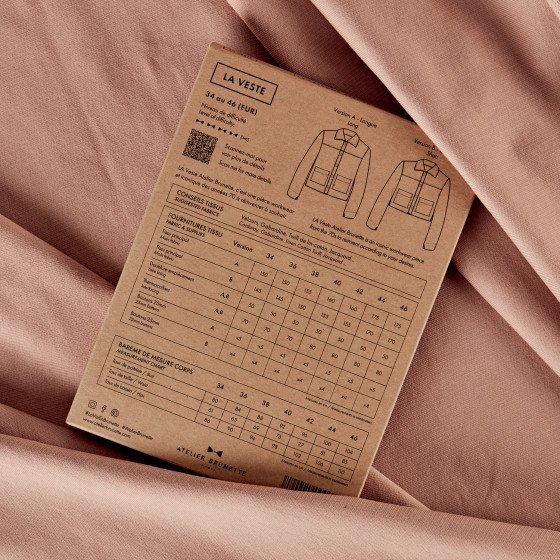 Das Schnittmuster beinhaltet die Größen 36-46. Eine ausführliche Nähanleitung in englischer und französischer Sprache ist enthalten.