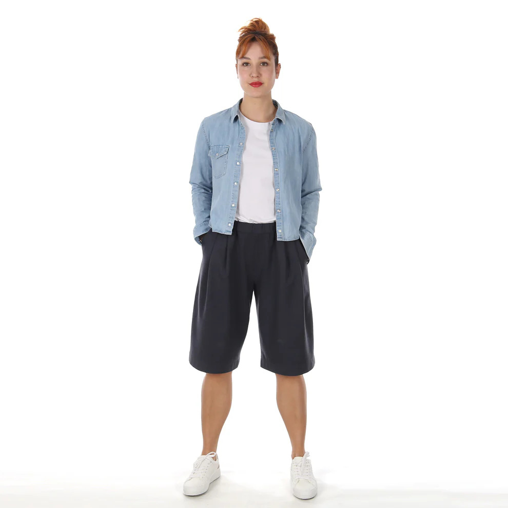 Frau Beeke ist eine bequeme Bermudashorts mit Gummizug, Eingriffstaschen und Bundfalten.
